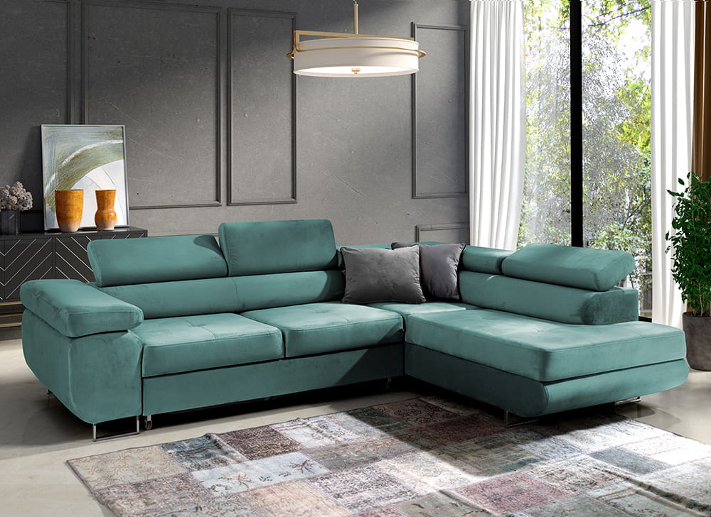 Wählen Sie zwischen der rechten oder linken Version des Ecksofas. Bei einem Seitenwechsel ändert sich der Preis nicht.