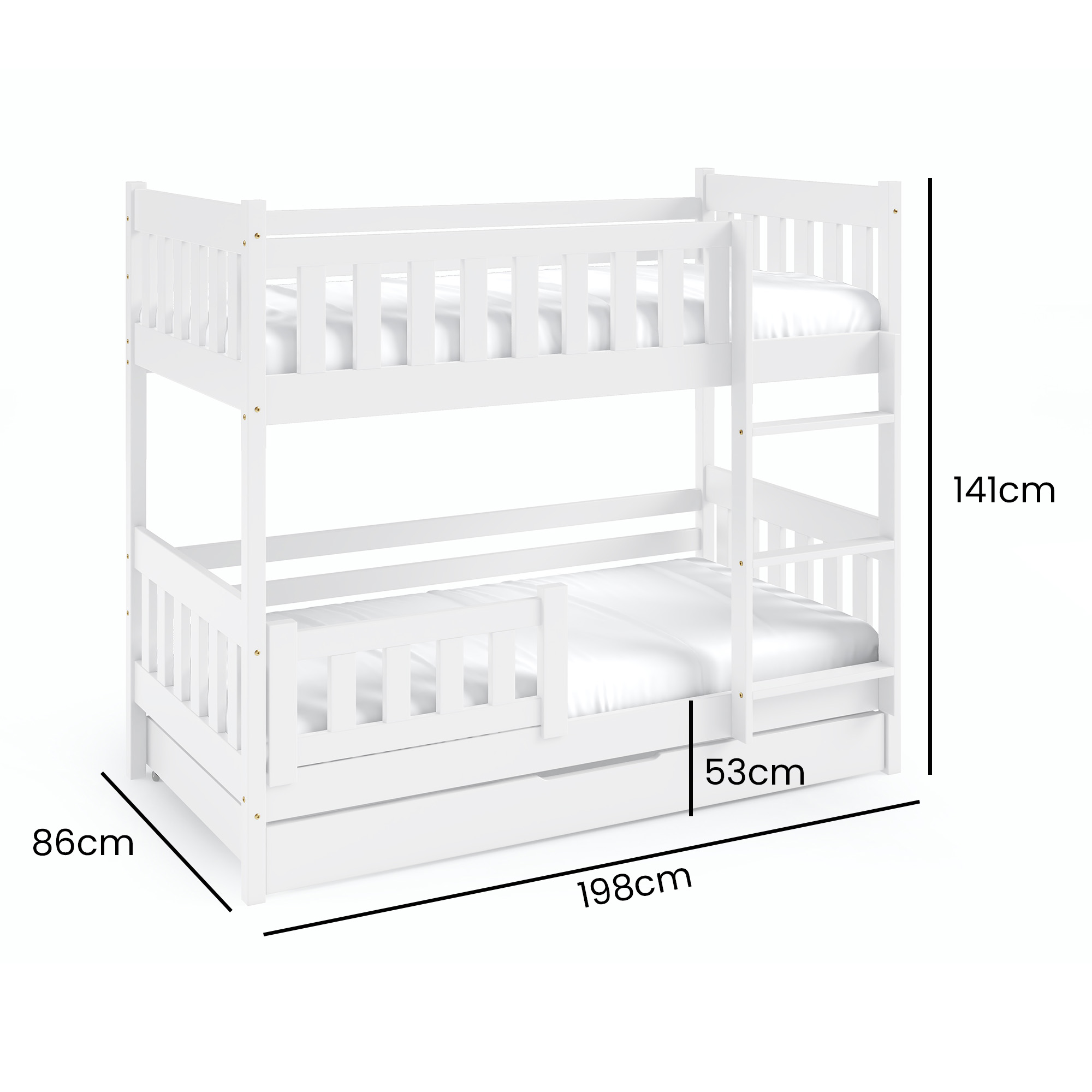 Das obere und untere Bett ist mit Geländern geschützt. So ist es ein sicherer Ort, während Ihr Kind schläft.
