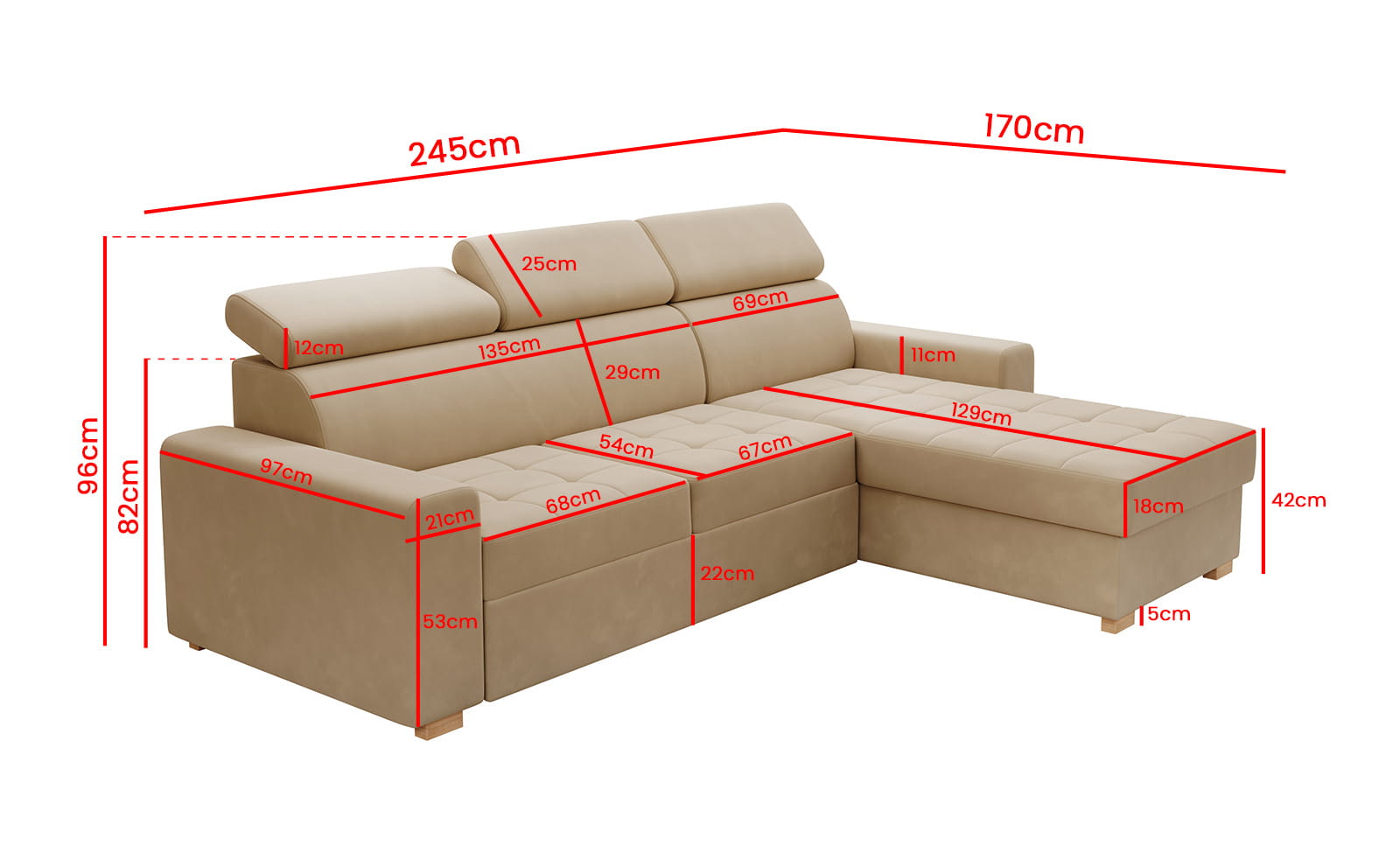 Abmessungen des Ecksofas