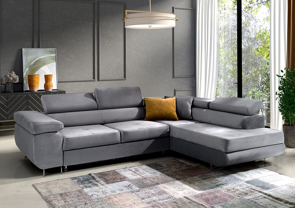 Wählen Sie zwischen der rechten oder linken Version des Ecksofas. Bei einem Seitenwechsel ändert sich der Preis nicht.