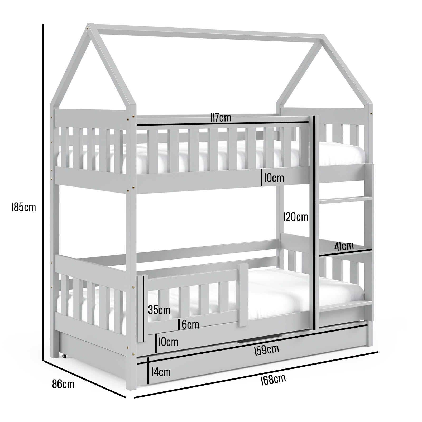 Pola Etagenbett aus Holz in Landhausform für Kinder - in grau